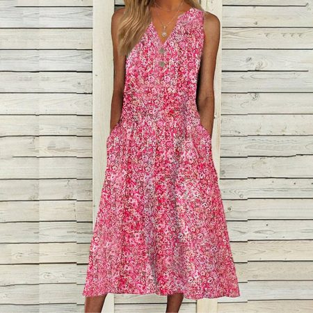 $58.99Original price was: $58.99.$42.99Current price is: $42.99.Description: V-neck Sleeve Length: Sleeveless Dress Length: Midi Pattern Type: Print Side Pockets Silhouette: A-line Material: 40% Elastane, 60% Rayon Machine Washable Size Chart: Size Bust Length inch cm inch cm S 35 90 46 117 M 37 94 47 120 L 39 99 48 123 XL 41 105 50 126…