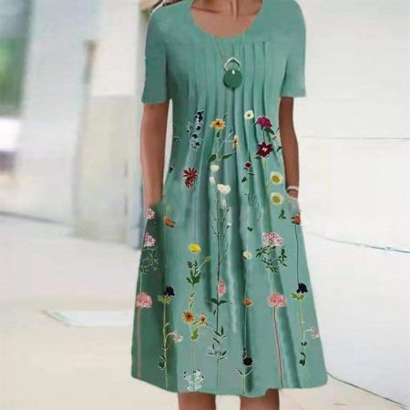 $69.99Original price was: $69.99.$46.99Current price is: $46.99.Description: Neckline: Round Neck Sleeve Length: Short Sleeve Dress Length: Midi Silhouette: A-line Pattern Type: Plants Side Pockets Material: 45% Elastane, 55% Rayon Machine Washable Size Chart: Size Bust Length Sleeves inch cm inch cm inch cm S 38 96 46 117 9 22 M 39 100 47 120 9 23 L 41 105…