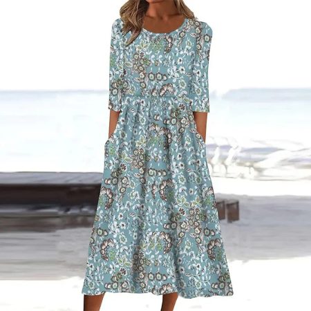$69.99Original price was: $69.99.$47.99Current price is: $47.99.Description: Neckline: Round Neck Sleeve Length: 3/4 Sleeve Dress Length: Midi Pattern Type: Print Silhouette: A-line Side Pockets Material: 45% Elastane, 55% Rayon Machine Washable Size Chart: Size Bust Length Sleeves inch cm inch cm inch cm S 38 96 46 117 13 34 M 39 100 47 120 14 35 L…