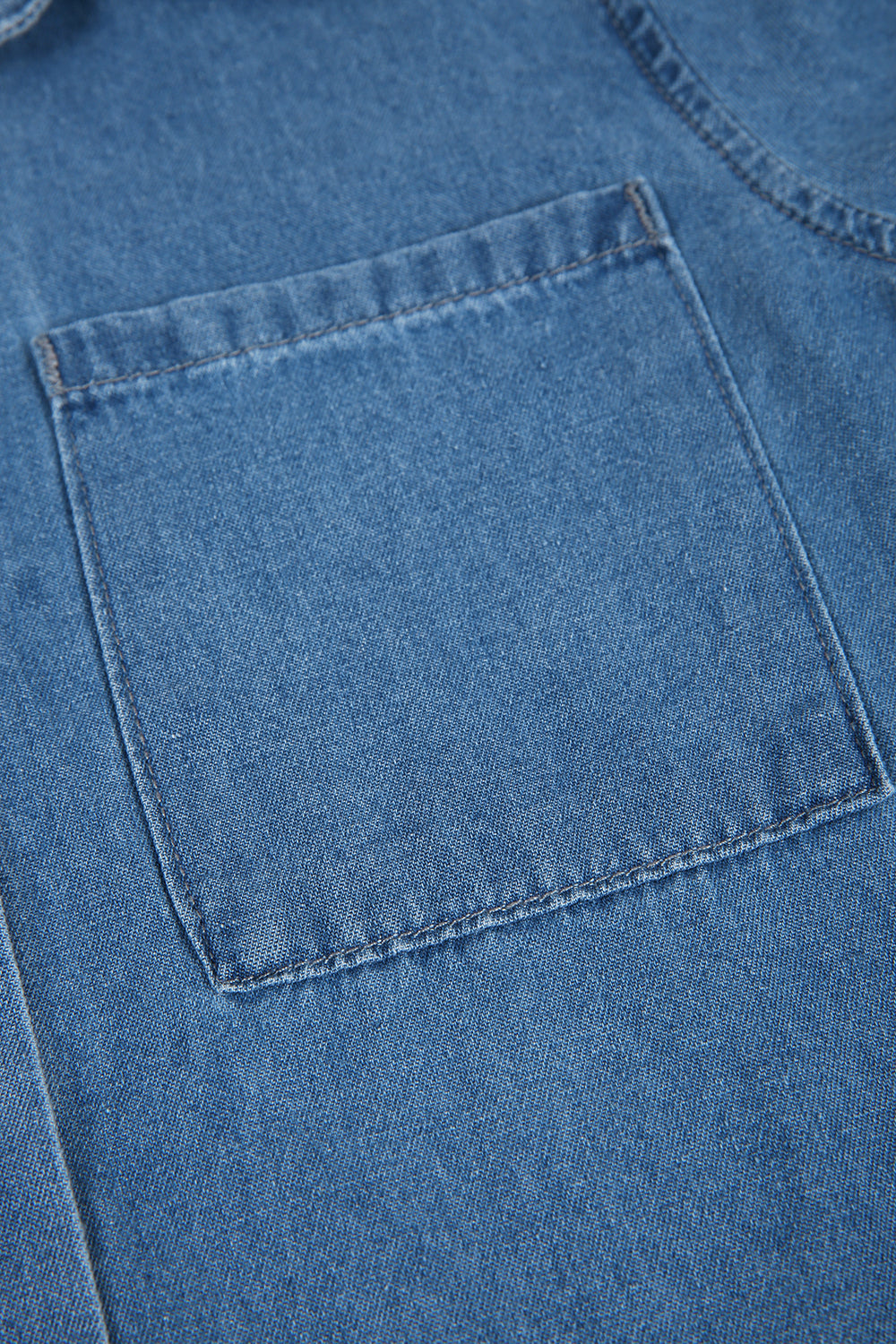 Oversized Chambray Denim Button Front Blouse Midi Dress