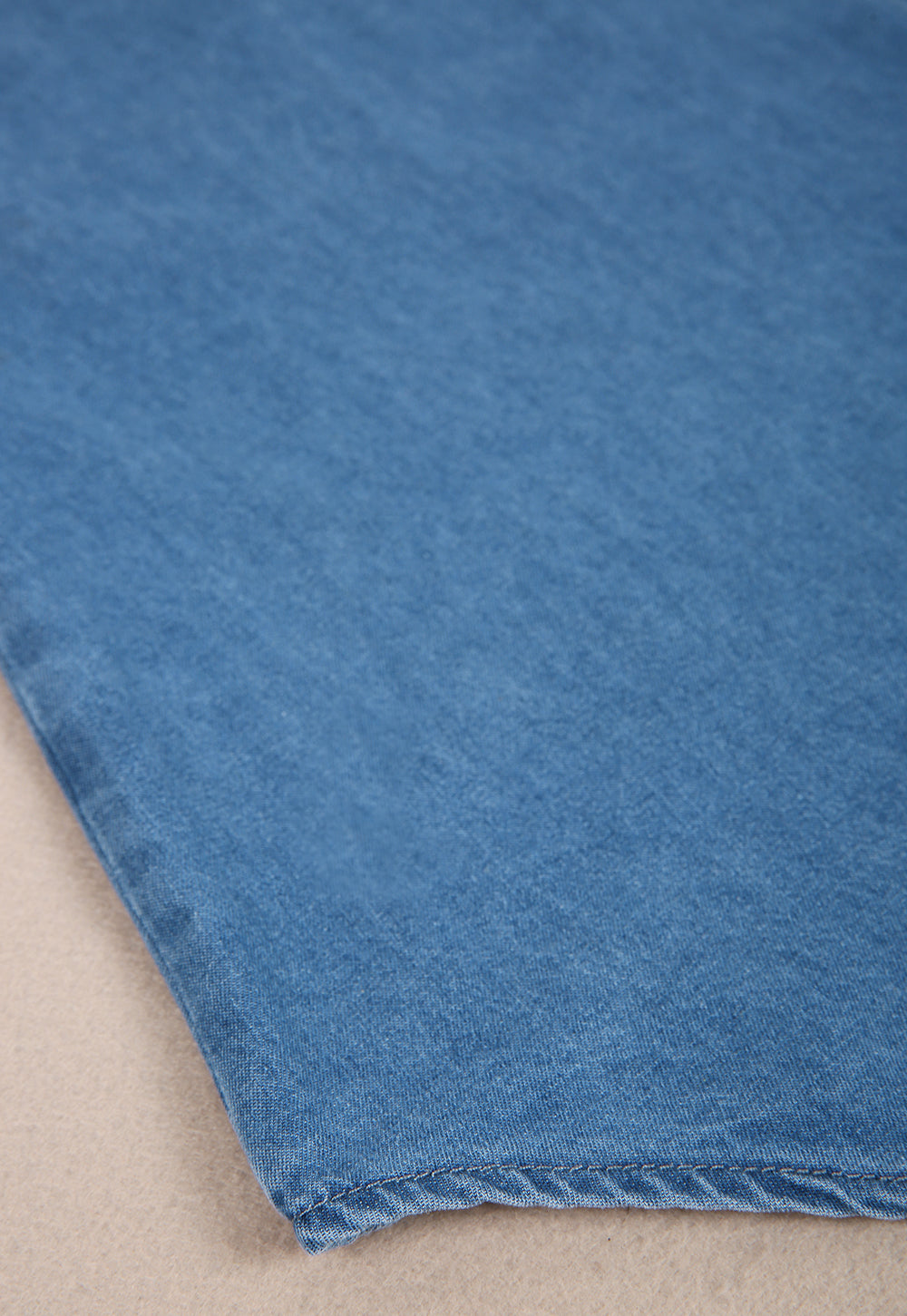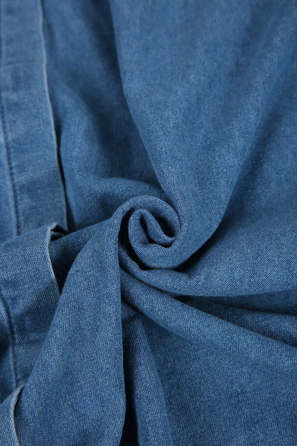 This effortless and classic chambray denim blouse gets a modern upgrade with a loose-fitting knee-length silhouette, versatile and perfect for wearing with a cinched belt. The button front, fold-over collar, and long sleeves provide just enough coverage for any day. Wear this dress open as a cardigan duster jacket. Wash in gentle or delicate cycle with light colors. Keep away from dark colors.