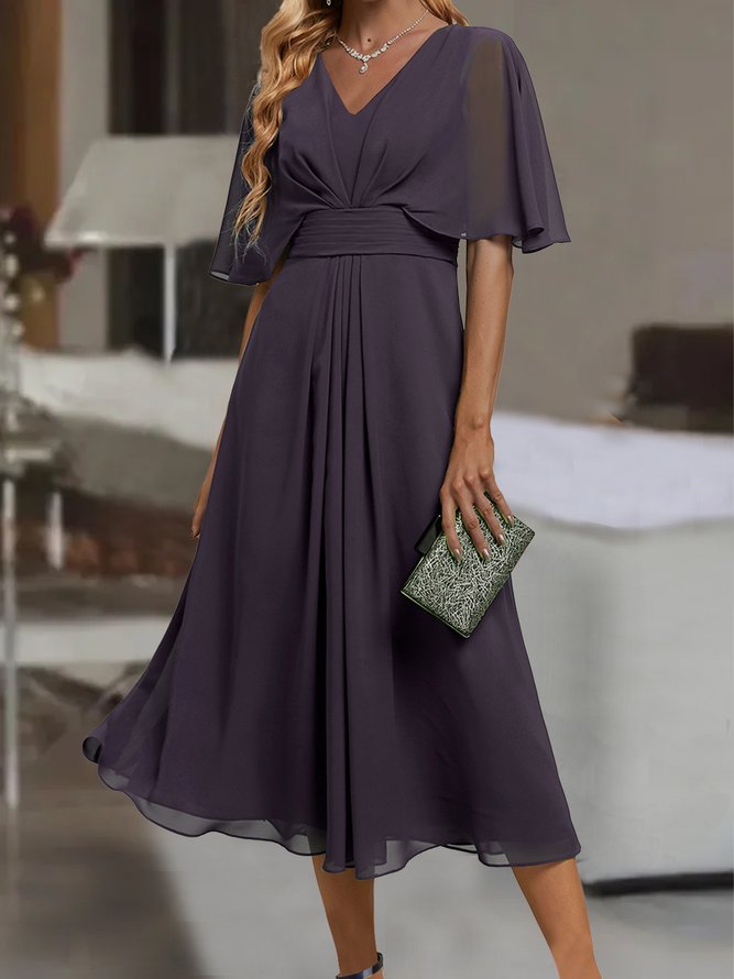 Purple Plain V-Neck Midi Dress