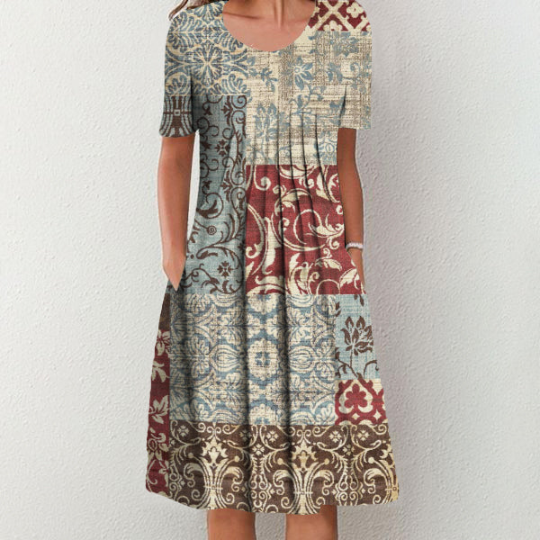Trendy Short Sleeve Print Midi Dress